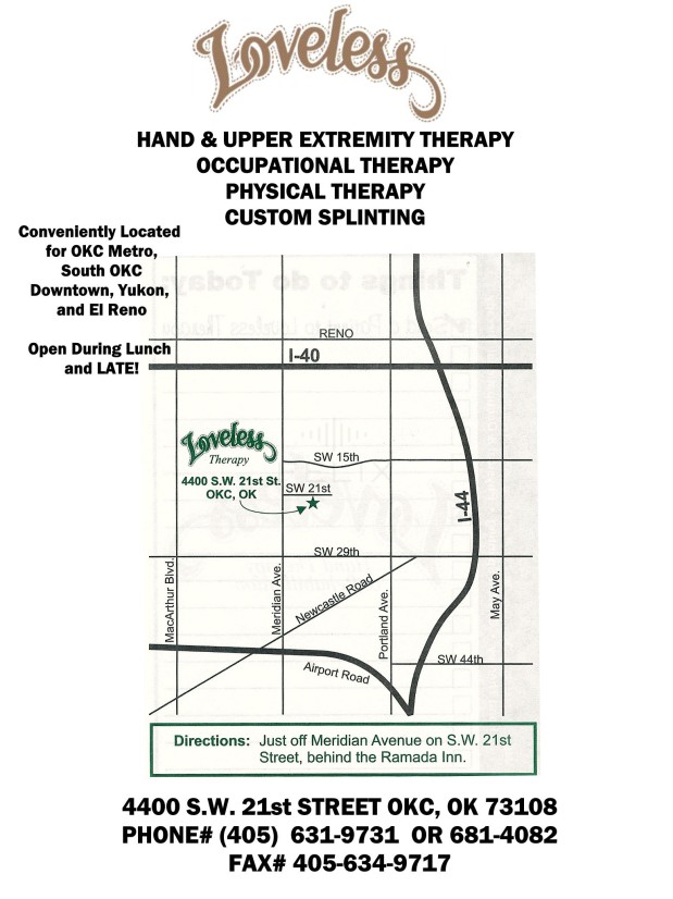At Loveless Hand Therapy & Rehab you are treated like part of our family, and you always see the Owner for your personal treatment. You never get treatment from a tech or assistant. Our medical clinic has earned a well respected reputation for getting rid of pain at the source and treating the entire body-not just the symptoms. Back pain, foot pain, neck pain, weakness, fatigue, arthritis, and hand injuries- we treat your entire body. All major insurances and Medicare are accepted. (We do not take Soonercare/Medicaid.)