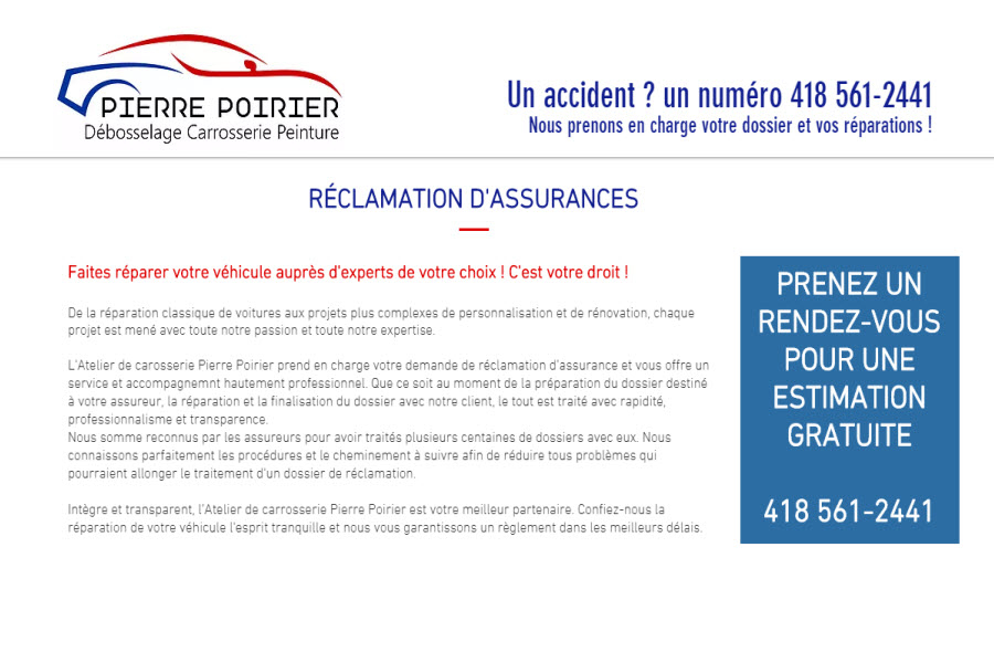 Atelier Pierre Poirier possède plus de 35 ans d'expérience en réparation de carrosserie et en peinture à Québec, vous pouvez nous faire confiance pour un travail de qualité. Plusieurs concessionnaires auto de la région nous font déjà confiance. Estimation gratuite, au plaisir de vous servir!