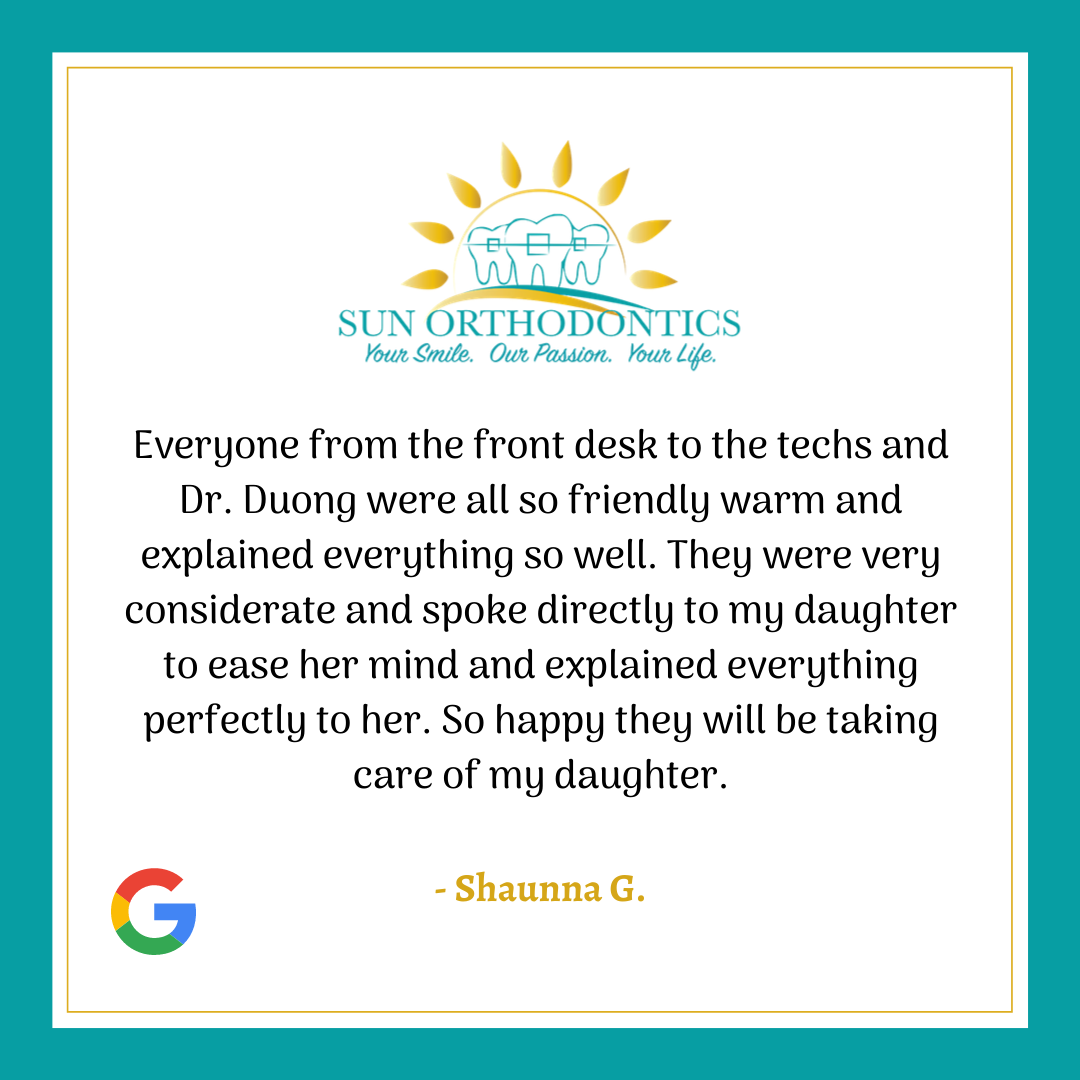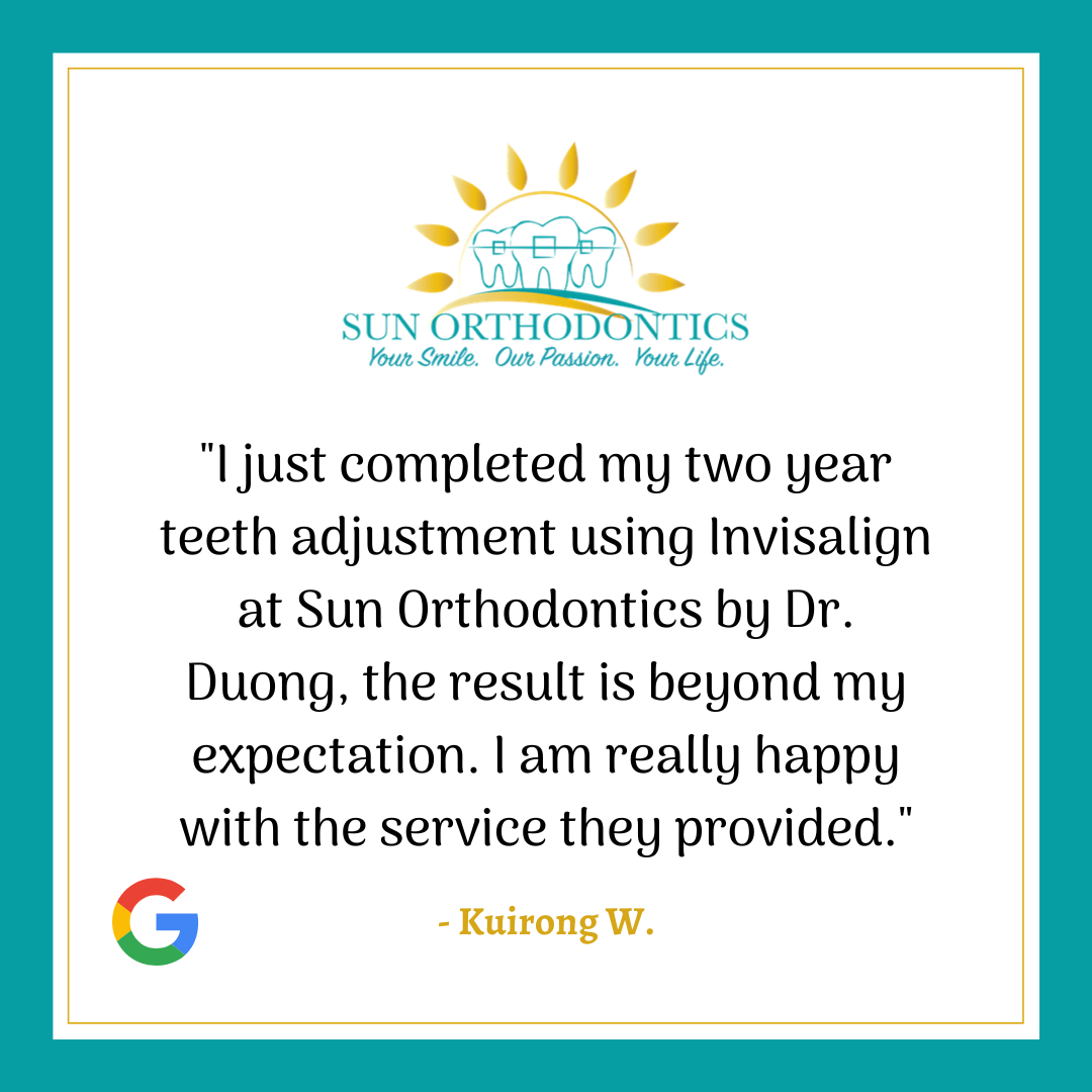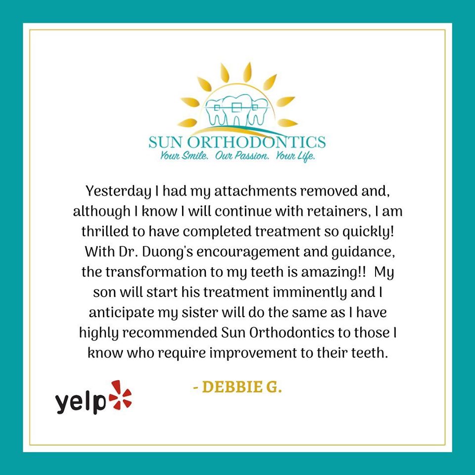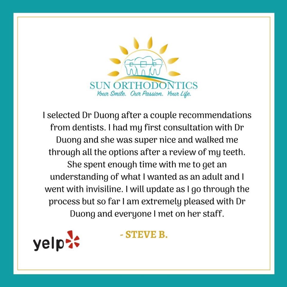 Sun Orthodontics is the place for you and your family's orthodontic needs. We provide a full spectrum of orthodontic treatments for adults and adolescents from minor tooth movement to correct spacing, crowding, thumb sucking habit to major skeletal discrepancies which may require extraction or orthognathic surgeries. We understand how important a straight, beautiful smile is, which is why we offer the state-of-the-art appliances and revolutionary services. We use only the latest procedures and technologies such as digital photography and radiology, self ligating brackets (Damon, Innovation), Invisalign.