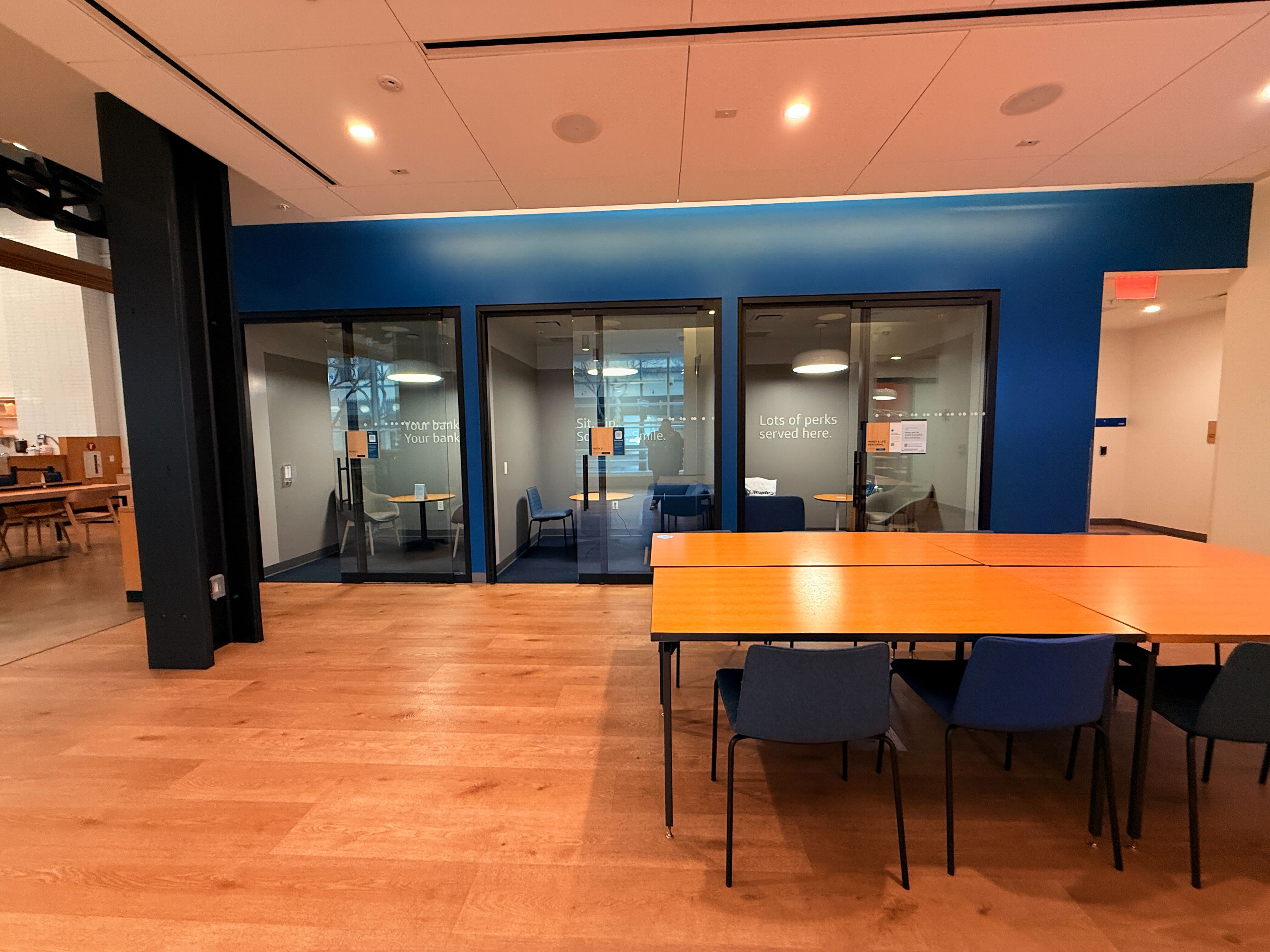 Capital One Cafés are part bank, part café–all in one place. Everyone’s welcome, whether you bank with us or not. Come in for everyday banking and in-person support from Ambassadors. Café ATMs are fee-free for Capital One Checking account holders to get cash, deposit cash or checks, check their balance, or pay a credit card bill. Enjoy world-class coffee from Verve Coffee Roasters and an all-day food menu. Get 50% off handcrafted beverages every day when paying with a Capital One or Discover debit or credit card. Settle in and enjoy free Wi-Fi and comfortable spaces for working, meeting or taking a break. You can even work toward money goals with free-for-everyone financial literacy events and workshops. Capital One N.A., Member FDIC.