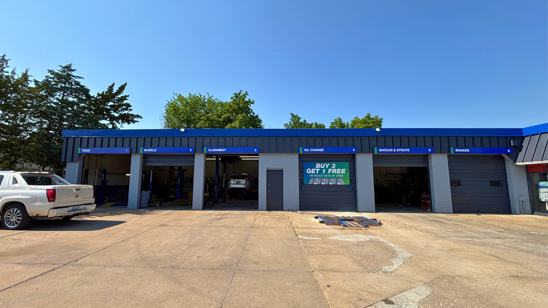 Tires, Wheels, Alignments, Brakes (Brake Check & Replacement), Steering & Suspension Repair (Shocks & Struts), Oil Changes, Suspensions, Diagnostics, Transmission Repair, Trailer Service, Vehicle Inspections, Air Conditioning Services, Headlight & Taillight Replacement, Radiator (Coolant Flush & Leak + Belts & Hoses), Rideshare Service Inspection, Manufacturer Recommended Preventative Maintenance, Lift & Level Kits, Engine Repair (Diagnostics, Repair, Tune-Up, Fuel Systems), Power Steering, Car AC Repair Service, Electrical Systems, Drivetrain (Differential Fluid, Axles & CV Joints, Wheel Bearing Repair, ASE Certified Mechanic, Tire Installation, Tire Repair, Tire Rotation, Tire Balancing, TPMS Service, Seasonal Tire Changeover, ATV/4x4 Tires, Trailer Tires