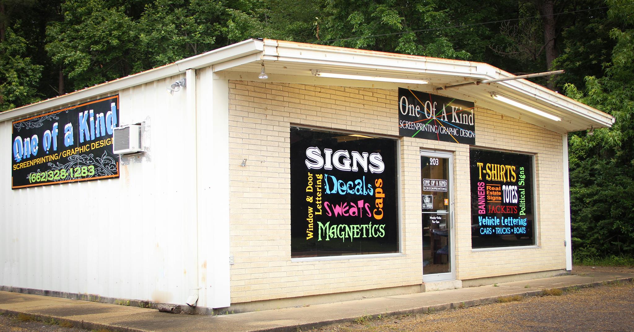 One of a Kind Screenprinting Graphic Design is a family-owned and operated business in Columbus, Mississippi, specializing in top-quality screenprinting and vinyl services. With over 30 years of experience, they offer a wide range of products including shirts, caps, tote bags, banners, decals, and signs for various purposes. Their dedicated team is committed to providing prompt and courteous service, ensuring customer satisfaction with every order.