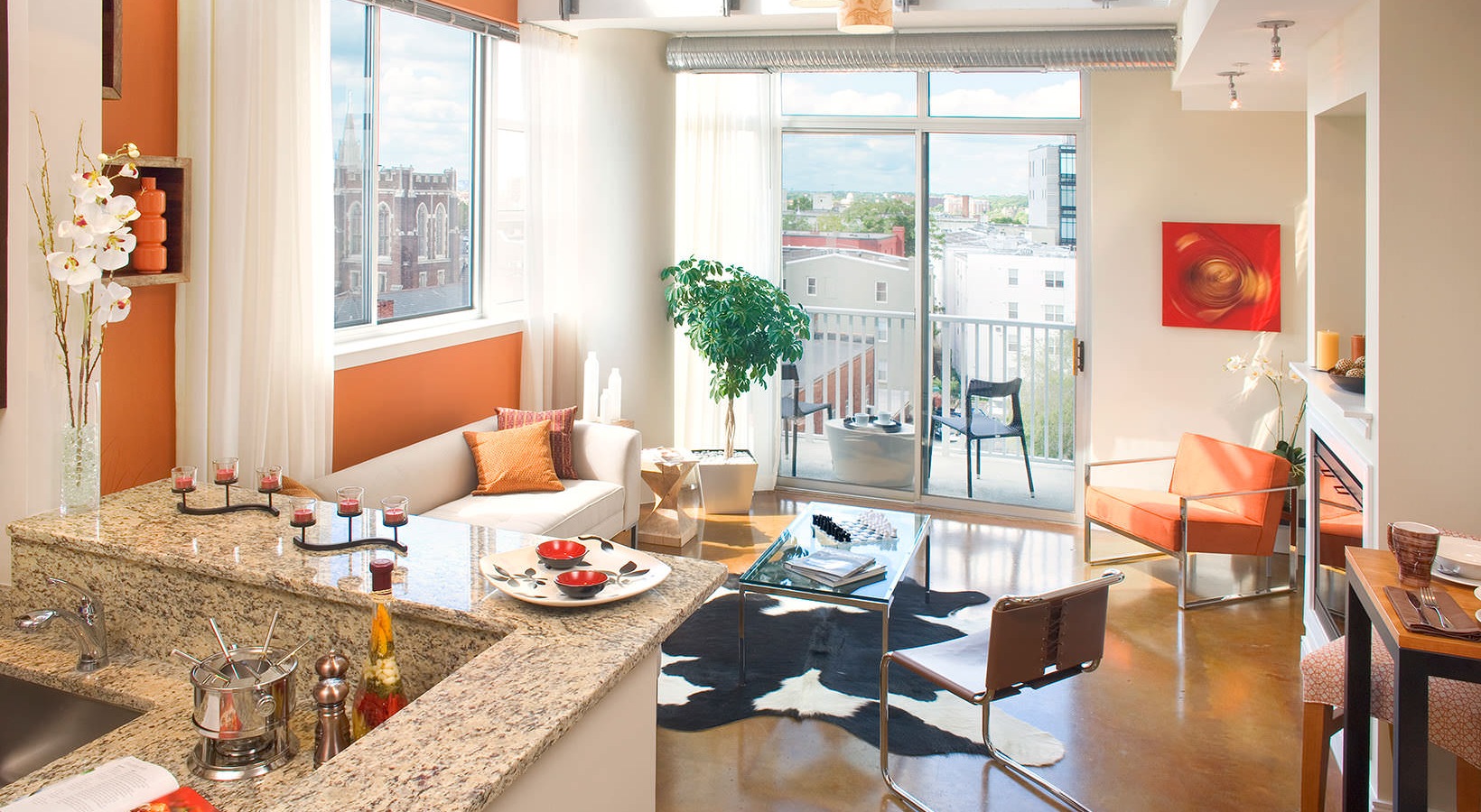 Two-story fitness center with free weights, Yoga studio, 360-degree DC views from roof deck, Bocce courts, Party room with kitchen and bar, High-powered business center, Front desk & concierge, Package receiving, Underground parking garage, Lou’s City Bar & Tynan Coffee & Tea, Strength & cardio equipment, Roof deck with lush gardens & gas grills, Courtyard with cozy lounges & gas grills, Outdoor courtyard bar, Billiards, Boardroom, Resident services, Columbia Heights Metro access, Bike racks, Ledo Pizza & Pub & F45 Training, Open layouts, Gourmet kitchens, Granite countertops & designer cabinetry, Stained-concrete floors in living rooms, Ceramic-tiled bathrooms, Full & French balconies, landscaped terraces & patios *, Built-in computer desk *, Dishwasher, 9- to 10-foot ceilings, Stainless steel GE profile kitchen appliances, Gas cooking, Berber carpet in bedrooms, Full-size GE washer/dryer, Customized walk-in closets *, Fireplace *