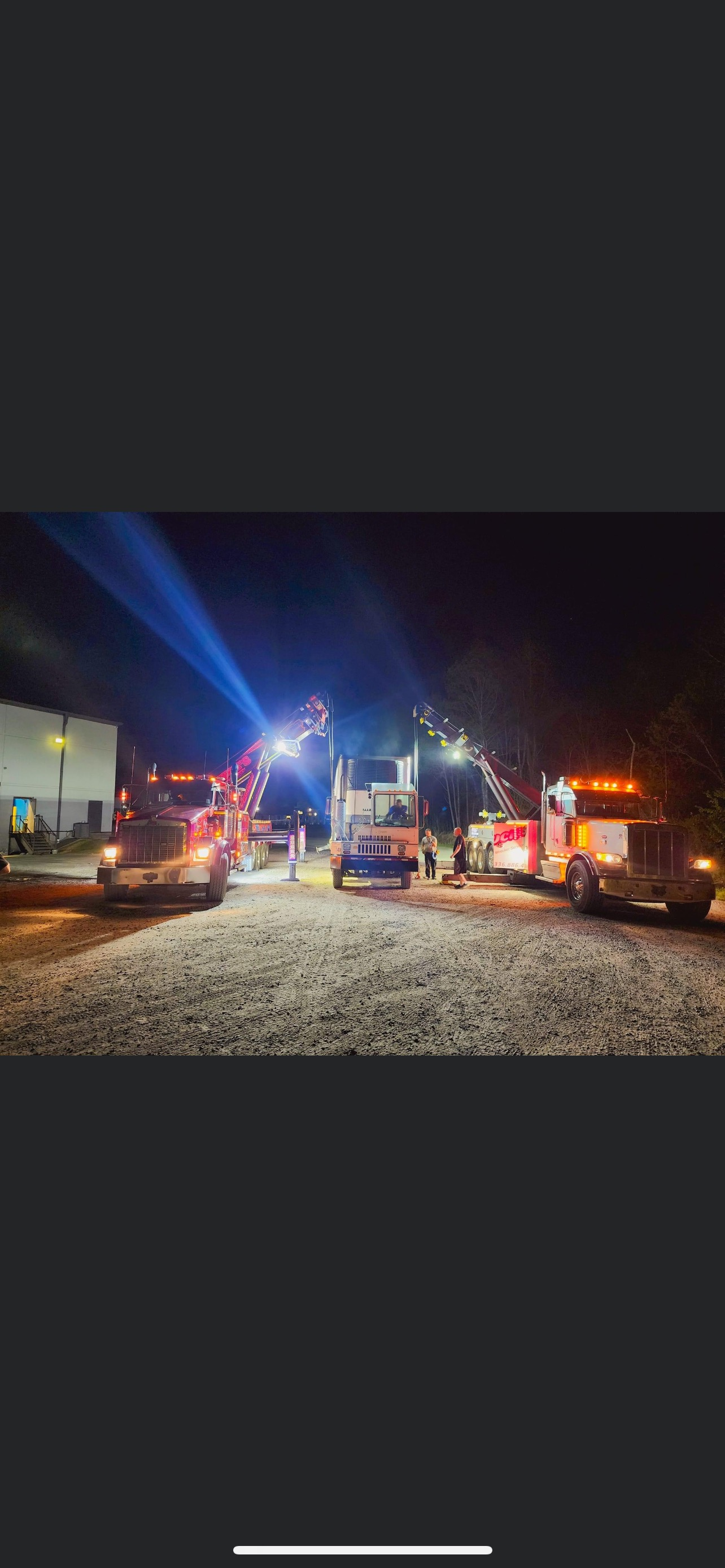 Equipment Transport, Light Duty Towing, Light Duty Road Service, Heavy Duty Road Service, Flatbed Transport, Landoll + Lowboy Trailer Transport, Tire Change, Lockouts, Fuel Delivery, Jump Start, Roadside Assistance, Fleet Service, Accident Cleanup, Big Truck Towing
