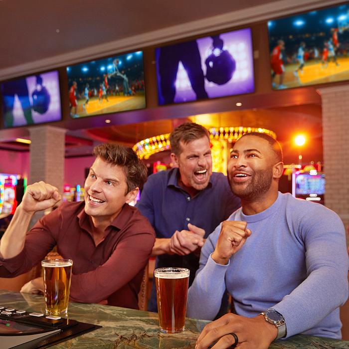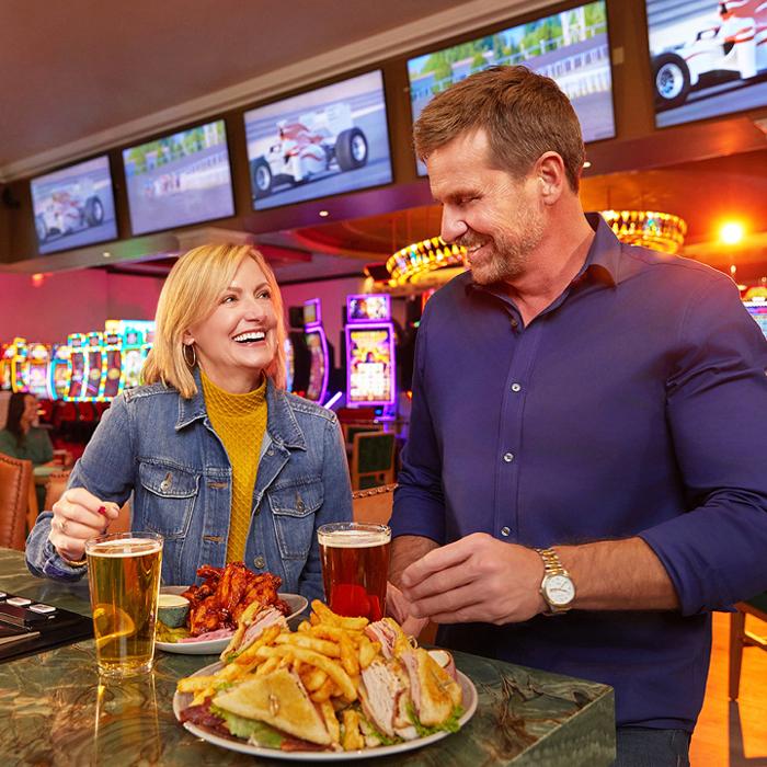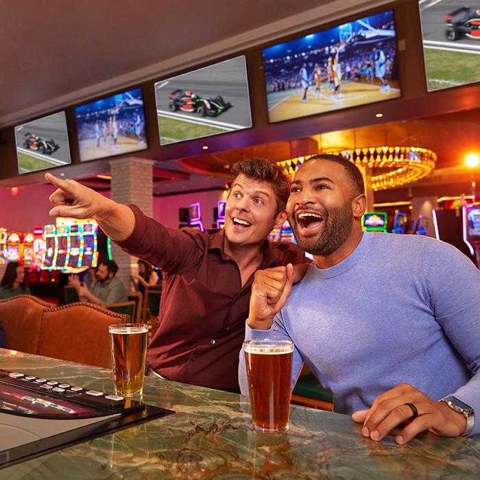 Meet up with friends or make new ones while watching all the big games on our numerous big screen TVs. Plus you can get in the action by wagering on horse racing and all sports with our convenient race and sports betting kiosks that are right inside the bar.