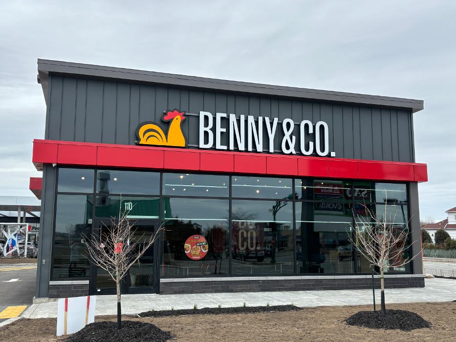 Benny&Co. Terrebonne excelle dans le poulet rôti. Nourri au grain et sans hormones, il est rôti selon une technique exclusive de cuisson lente. Venez essayer nos côtes levées, poutines et délicieux sandwichs en salle à manger ou passez une commande pour livraison! Le restaurant parfait pour des soupers en famille, des 5 à 7 et toute autre occasion. Des options santé, sans gluten et végétariennes sont aussi disponibles. // We excel in rotisserie chicken. Our grain-fed chicken is raised without hormones and is roasted according to an exclusive slow cooking technique. Try our ribs, poutines and our delicious sandwiches. We support local producers by buying more than 90% of our products in Canada. Healthy, gluten-free and vegetarian options available.