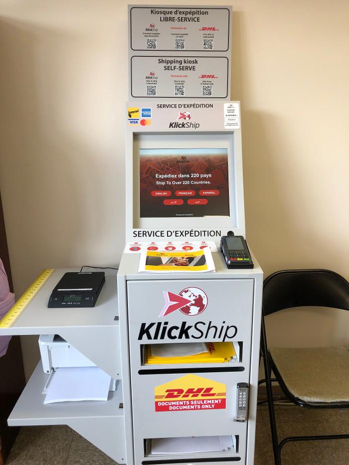 Klickship provides DHL Express and Canpar services at self-serve kiosks across various Canadian cities and provinces.
