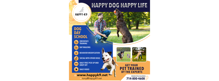 HappyK9 is your go-to destination for professional dog training services. With a team of expert trainers and a commitment to positive reinforcement techniques, HappyK9 offers boarding & training programs, private lessons, and free consultations at home.