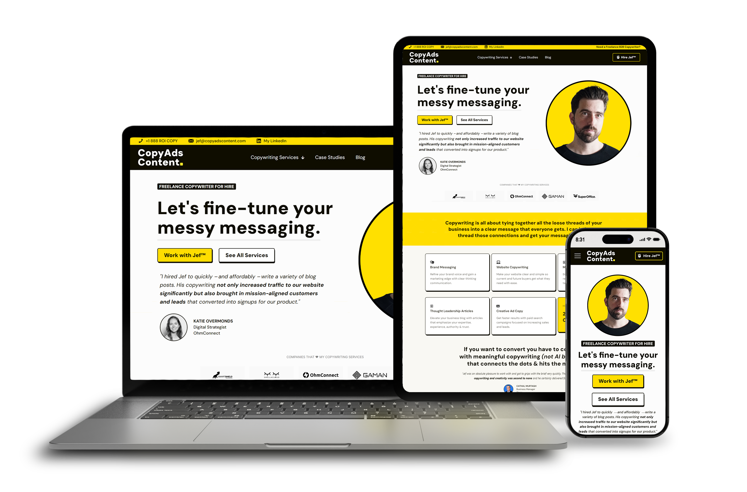 His attention to detail is matched only by his creativity and passion for fulfilling his clients needs and creating great websites and excellent copy. You can come to Jef with only a vague objective and after the creative process is done, leave with a brand and website your competitors will fear.