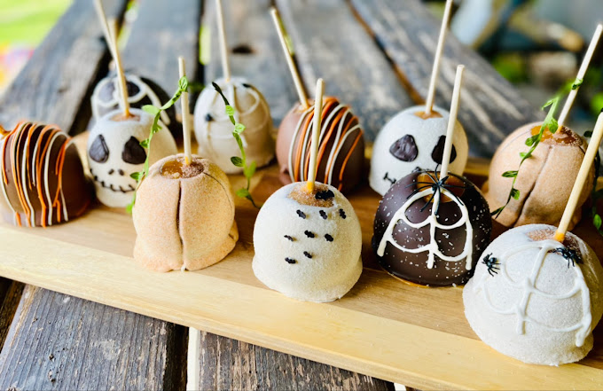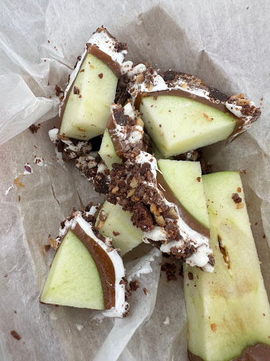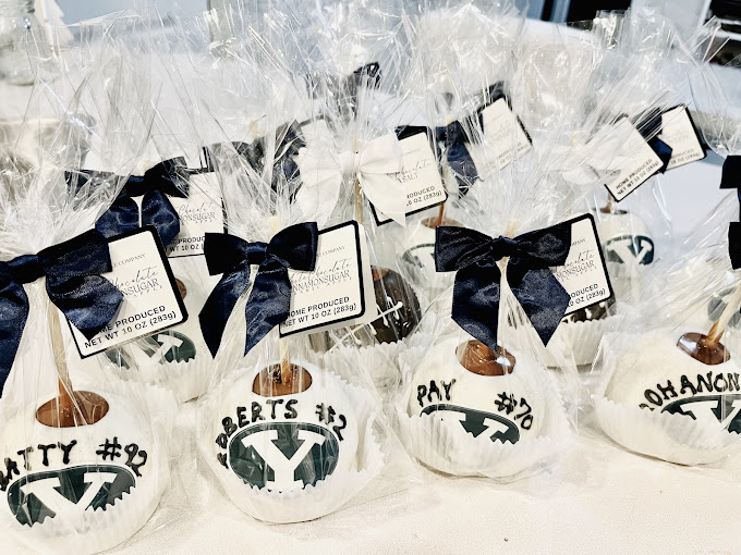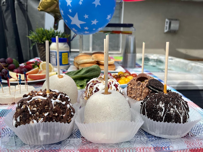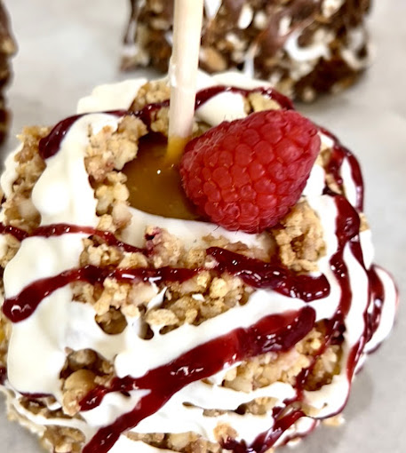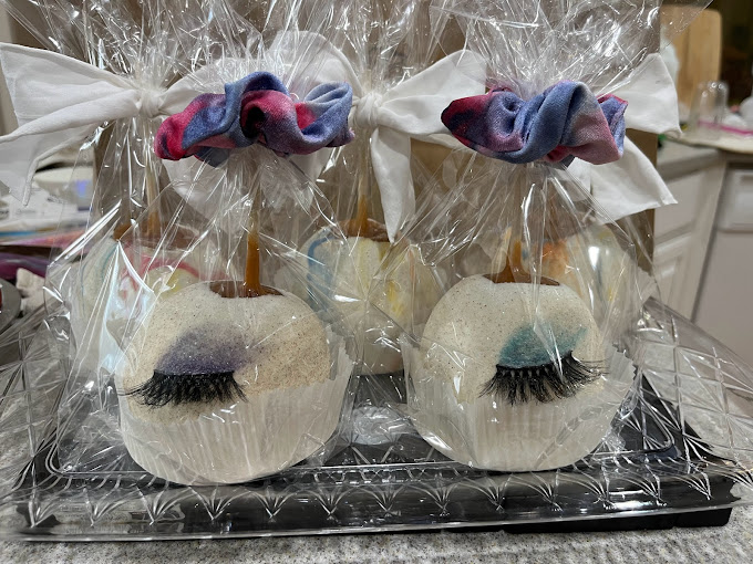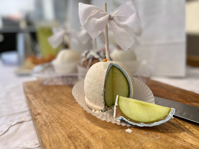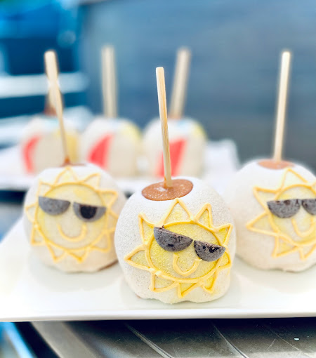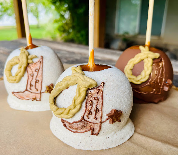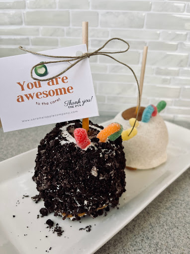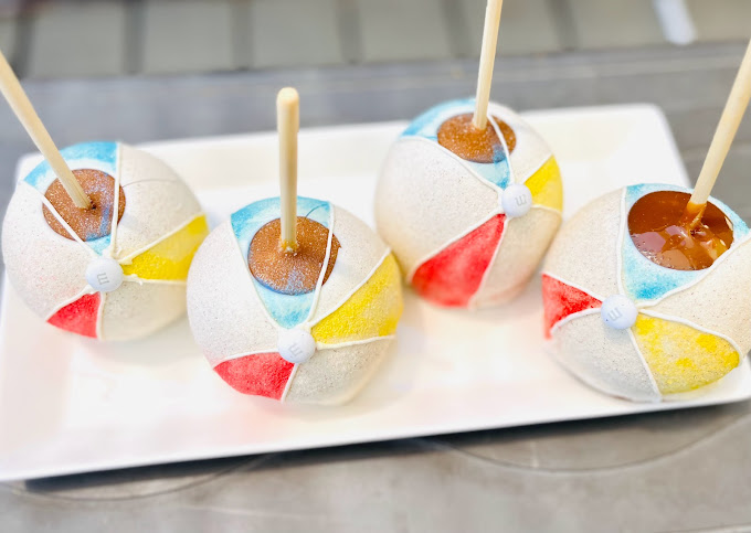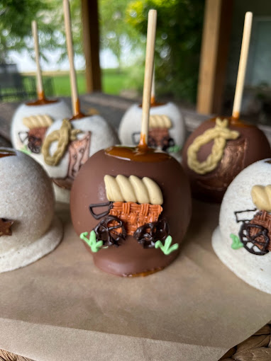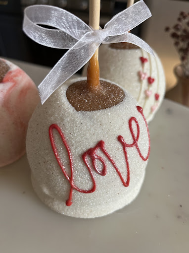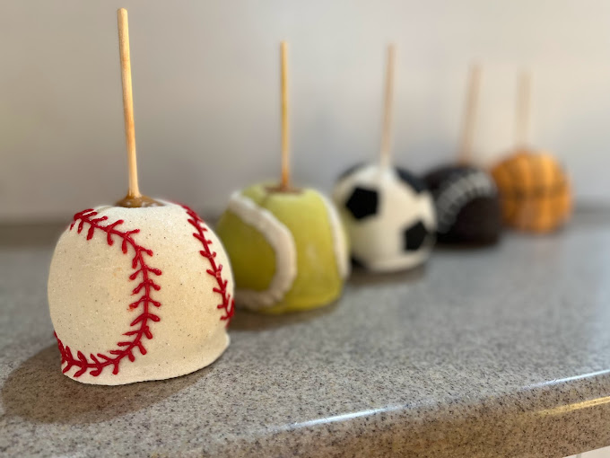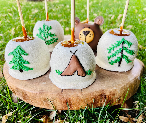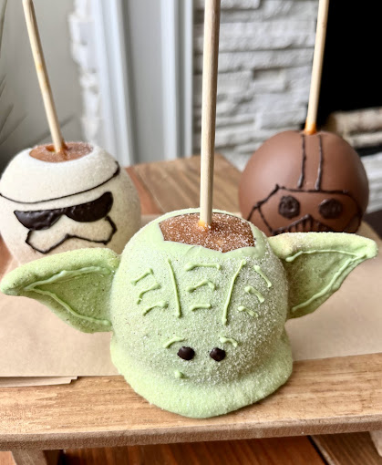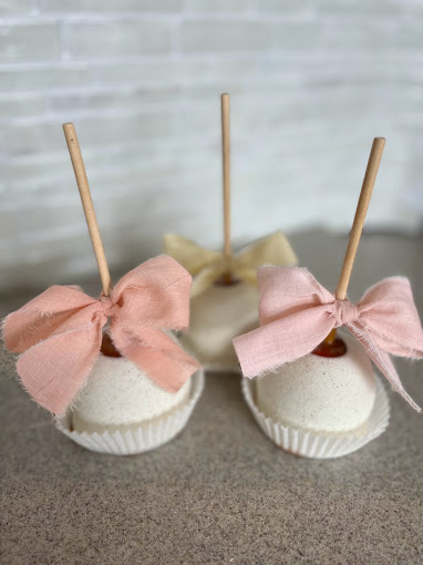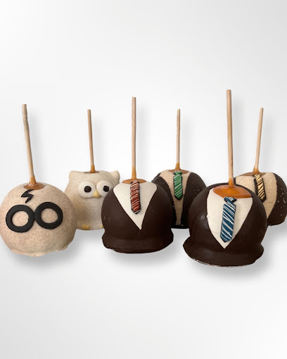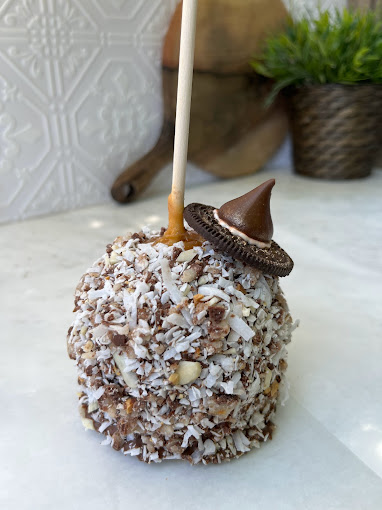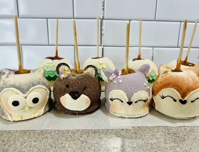 caramel apples, Flavored Caramel apples, White Chocolate dipped apples, themed apples, themed caramel apples, dessert shop, custom ordered caramel apples, dessert caterer, event caterer