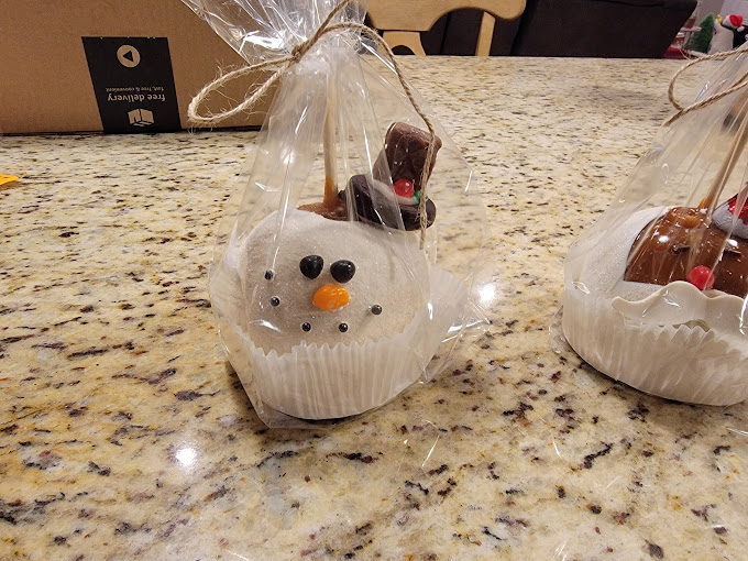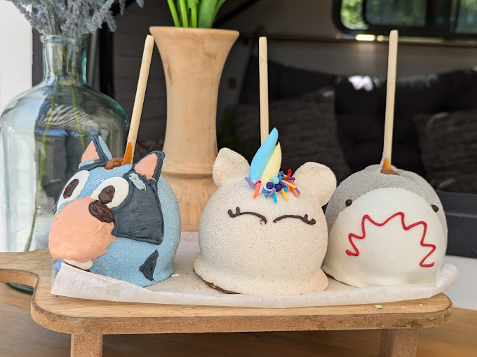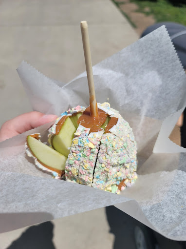 Pick up in the fridge out front. Our caramel is homemade from scratch… no reheating pre-made squares, blocks, sheets etc. We offer a variety of themed apples such as unicorns, snowmen, mummies, and ba Go to full description...