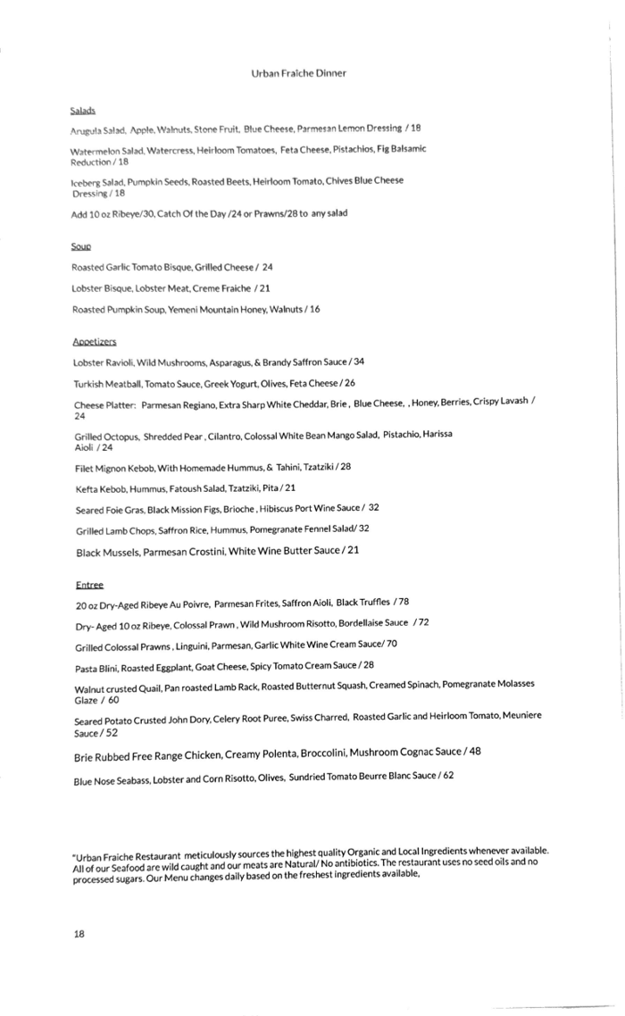 About Urban Fraiche Restaurant