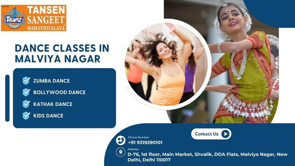 Join the most vibrant dance classes in Malviya Nagar at Tansen Sangeet Mahavidyalaya, where creativity meets excellence. Located at D-76, 1st Floor, Main Market, Shivalik, DDA Flats, Malviya Nagar, New Delhi, Delhi 110017, we offer professional training in various dance styles, including Bollywood, hip-hop, contemporary, classical, and Kathak. Our experienced instructors are dedicated to helping students of all ages and skill levels unlock their potential through personalized coaching and engaging lessons. Whether you’re a beginner discovering the joy of dance or an advanced dancer honing your craft, our classes provide the perfect environment for growth and expression. In addition to dance, we also offer music lessons in guitar, keyboard, tabla, harmonium, and more, making us your go-to destination for performing arts education. Contact Us: Phone: +91-9319290101 Sign up for the best dance classes in Malviya Nagar today and unleash your inner performer with Tansen Sangeet Mahavidyalaya!