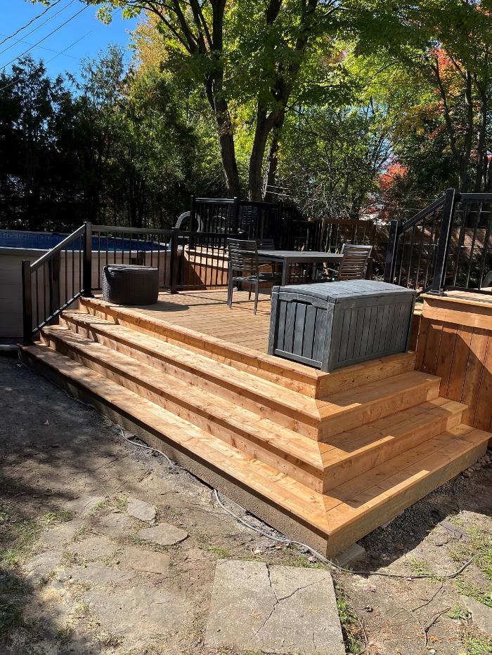 Conception de terrasse et patio en bois, Conception de terrasse et patio en composite, Installation de rampe d'aluminium, Conception de Deck de piscine, Réparation et modification de terrasse. patio et balcon.