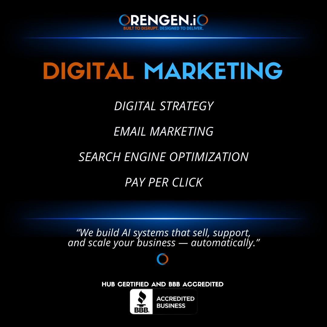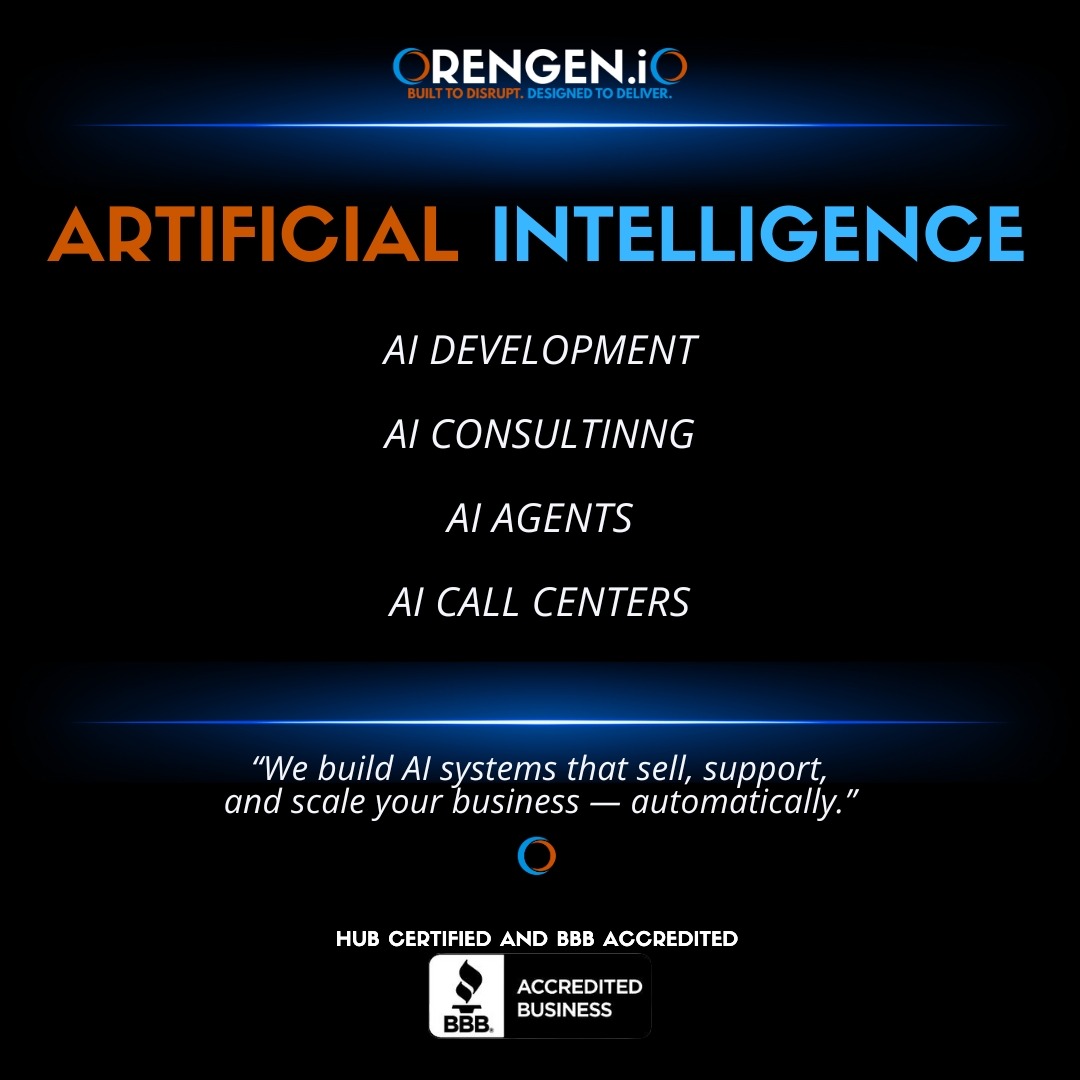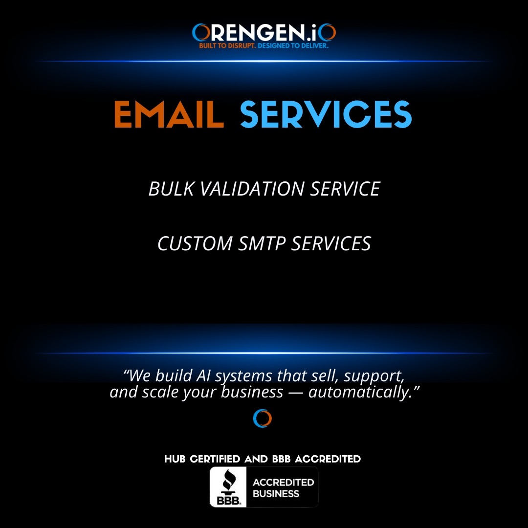 OrenGen specializes in AI-driven digital solutions designed to transform your business. Our expertise includes AI Agents, AI Chatbots, and AI Call Centers that automate operations, enhance customer experiences, and drive growth. We also offer automation tools, email validation, SEO and web security to streamline your workflows and protect your digital assets.