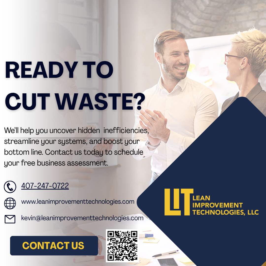 Lean Improvement Technologies (LIT) helps businesses and non-profits maximize efficiency, reduce waste, and increase profitability through proven process improvement systems. Our innovative business solutions combine cutting-edge technologies with creative problem-solving to streamline operations, enhance customer satisfaction, and drive measurable results. At LIT, we identify hidden inefficiencies, recover wasted resources, and deliver customized strategies that unlock new growth opportunities. Whether you’re looking to improve workflows, engage more effectively with your team, or boost your bottom line, Lean Improvement Technologies provides the tools and expertise to transform your organization and achieve lasting success.