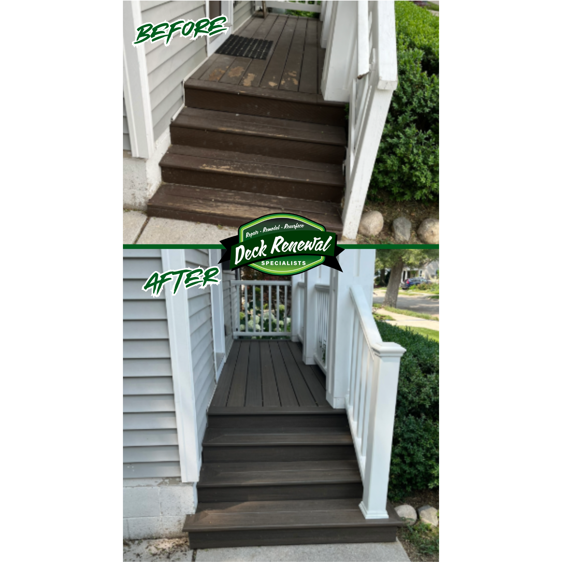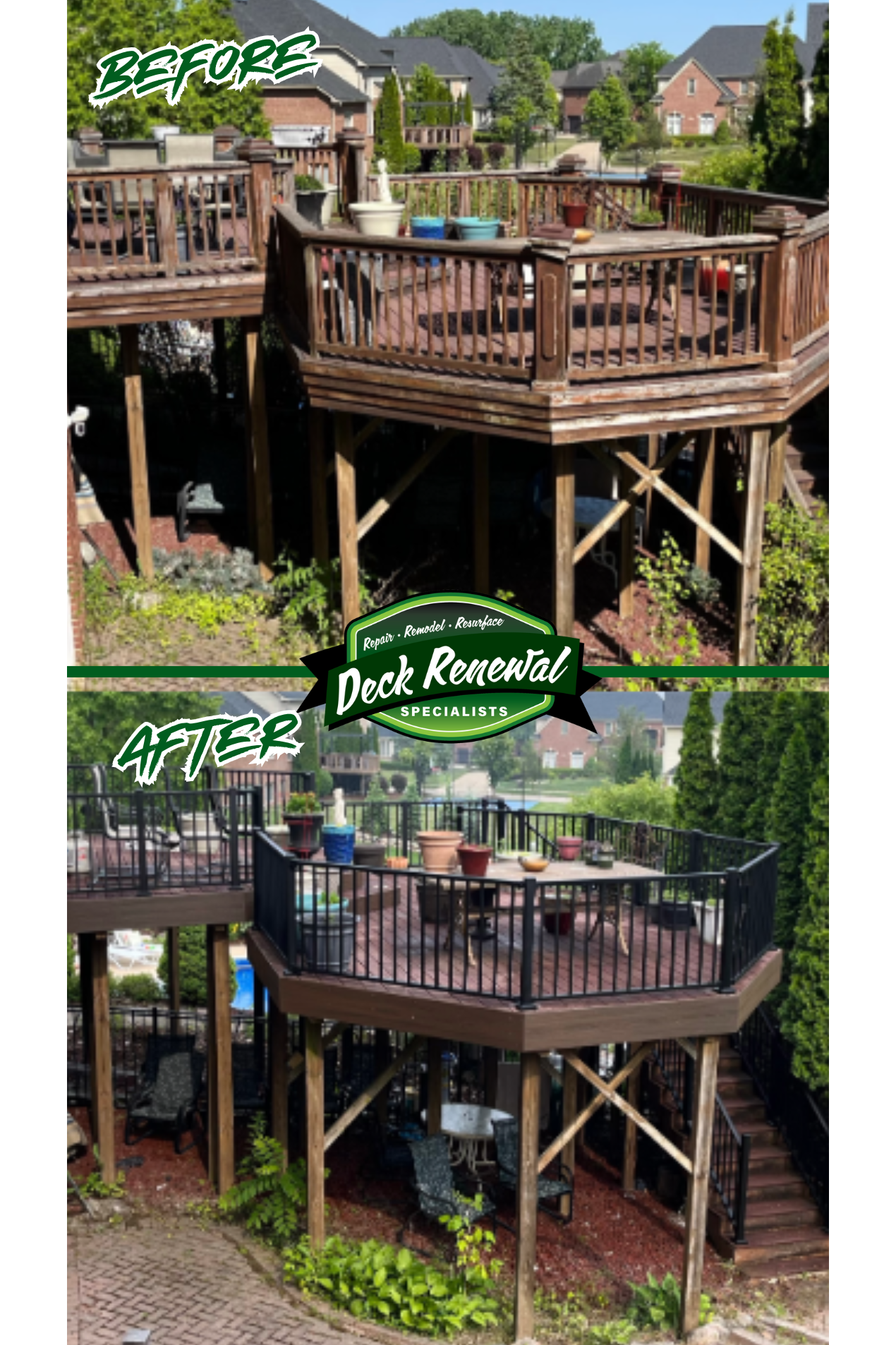 Deck Renewal Specialists, LLC is Southeast Michigan's premier deck repair and restoration contractor serving residential and commercial properties throughout Livingston County, Oakland County, Macomb County, and Wayne County. We specialize in comprehensive deck refinishing, deck board repair, deck railing repair, and composite deck repair services, and more that restore your outdoor living space to like-new condition. Our expert wood deck restoration and composite deck repair services cover all major brands including Trex, TimberTech, Fiberon, Deckorators, and Azek composite materials. We provide professional deck board replacement for rotted, cracked, and warped planks, along with deck railing repair and deck railing replacement to ensure structural integrity and safety. Our professional deck staining and deck sealing services utilize premium products from trusted brands like Behr Premium, Sherwin-Williams SuperDeck, Cabot Australian Timber Oil, and Benjamin Moore Arborcoat for long-lasting protection and beauty. We also specialize in deck power washing and deck cleaning, deck resurfacing and deck refinishing, plus complete deck structural repairs and deck rebuilding when needed. Our team uses only the highest quality materials including Thompson's WaterSeal and Ready Seal deck sealers, Olympic Maximum stains, Deck-Drive screws, hidden deck fasteners, and stainless steel hardware to ensure professional results that stand the test of time. Proudly serving deck contractors near me searches throughout Fenton, Flint, Brighton, Howell, Hartland, Linden, Grand Blanc, and surrounding Southeast Michigan communities. We're licensed, insured, and committed to extending your deck's lifespan with professional craftsmanship and exceptional customer service. Call today for your FREE deck inspection and estimate!