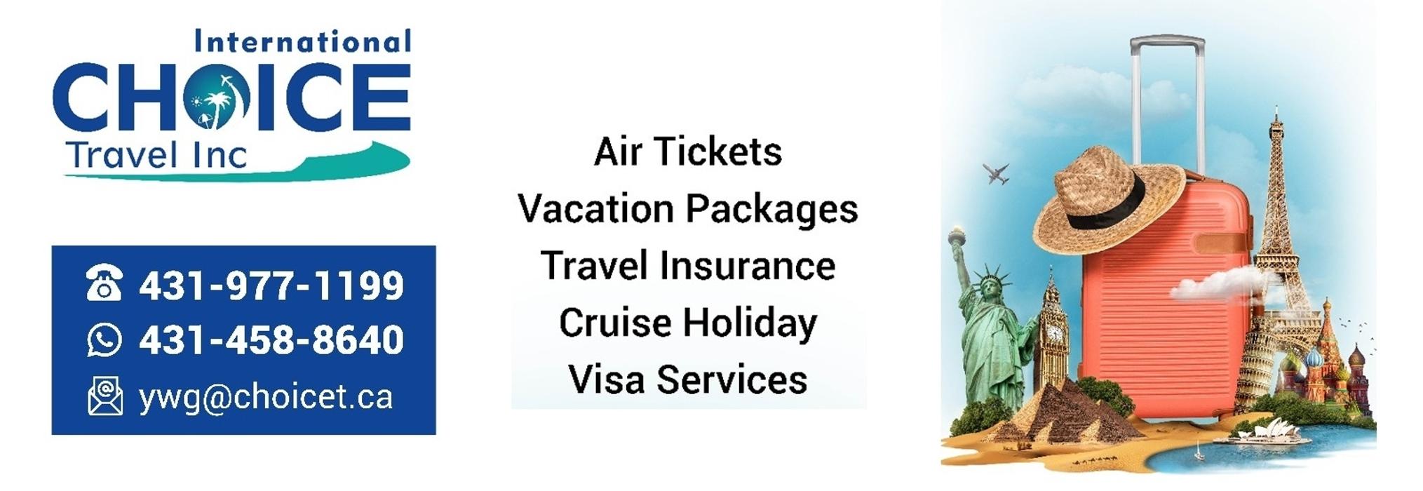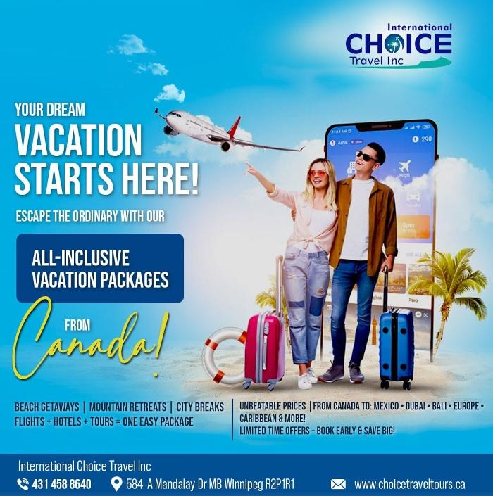 Welcome to International Choice Travel Winnipeg, where your travel dreams take flight. We are a full-service travel agency dedicated to creating unforgettable travel experiences for individuals, families, groups, and businesses.