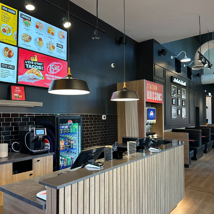 delivery, kid's menu, menu enfant, pour emporter, salle à manger, bière et vin, beer and wine, livraison, takeout, dine-in