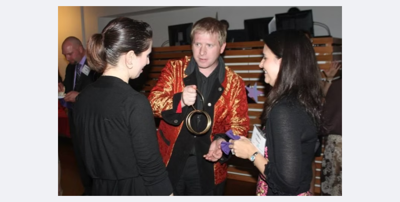 Geoff Weber puts on a mind-blowing show that blends magic with nostalgic references. He incorporates retro toys, music, and movies from the 1980's for his all-ages performances. Get in contact now to book a gig!
