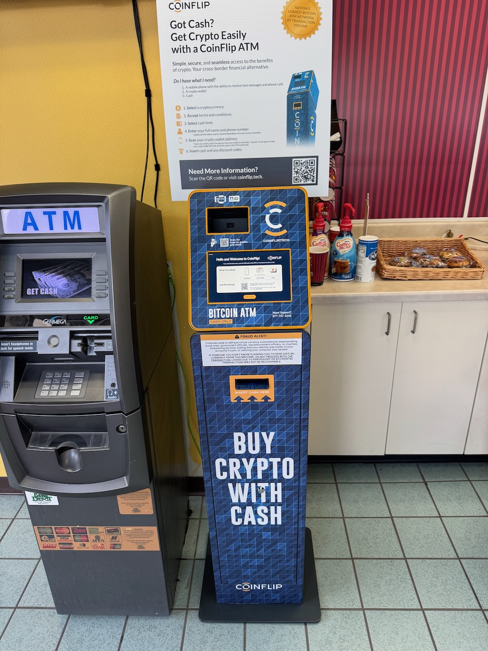 CoinFlip offers the easiest and fastest way to buy bitcoin and other cryptocurrencies with cash. Just select the coin you want, verify your phone number, scan your wallet address, and input your cash. Bitcoin is sent almost instantly with guaranteed low crypto ATM fees nationwide. For any questions, reach out to our 24/7 customer support through phone, text, or email!