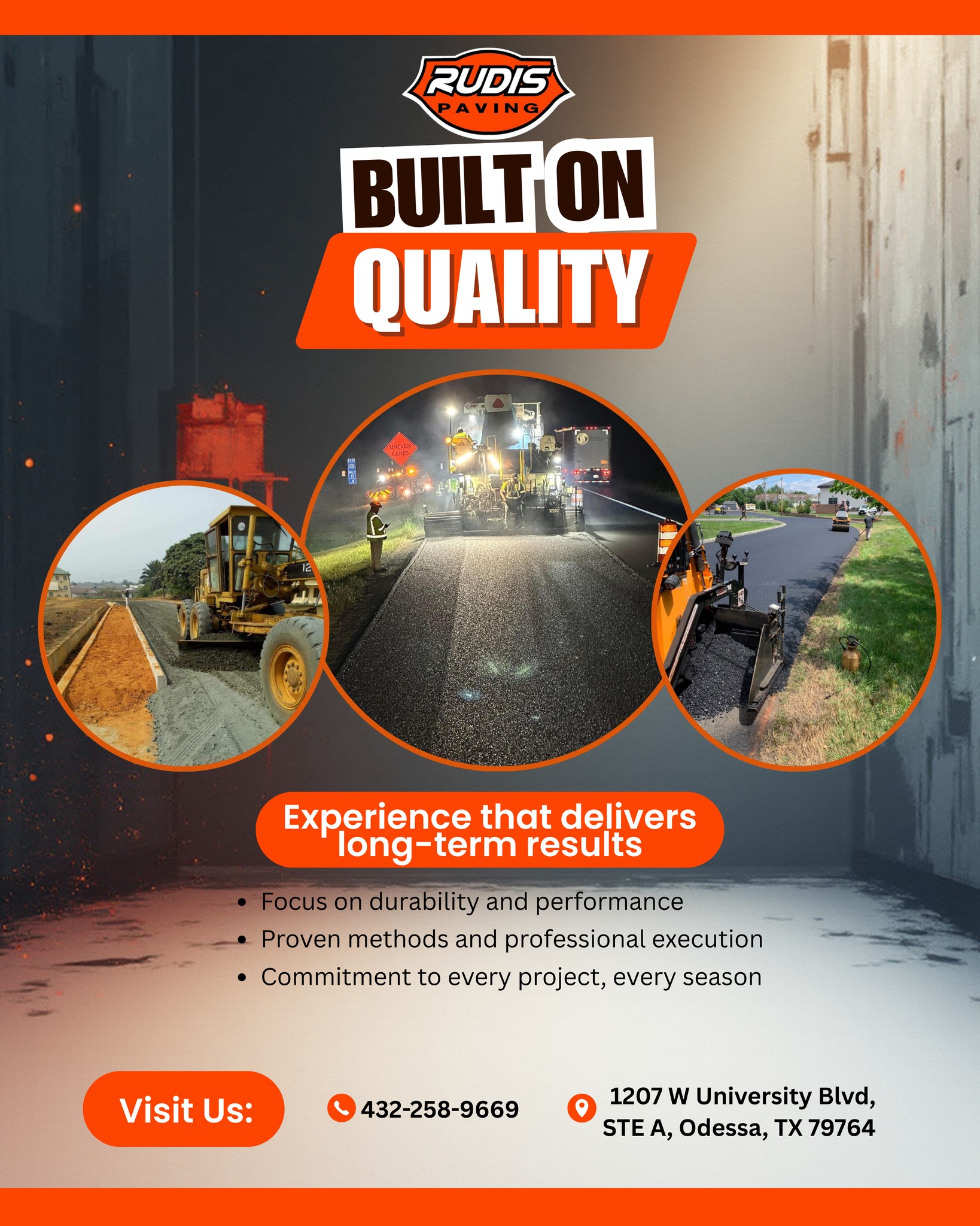 Transform your property with the expert touch of Rudis Paving, a leading paving contractor in Odessa, Texas. Specializing in durable and aesthetically pleasing paving solutions, they are dedicated to enhancing both the functionality and curb appeal of your home or business. Their skilled team brings years of experience to every project, ensuring top-quality craftsmanship and materials. Located at 1207 West University Boulevard, Rudis Paving is your local partner for creating beautiful and lasting paved surfaces that stand the test of time.