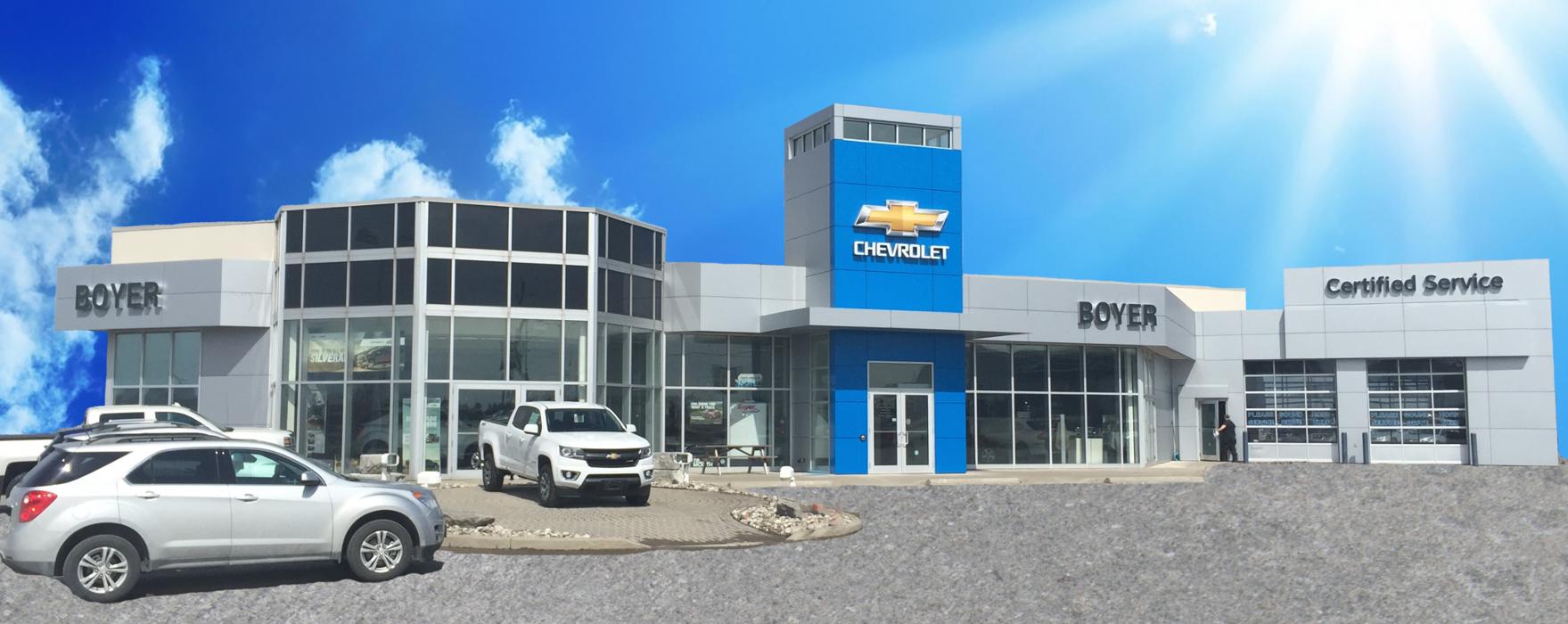 #1 in all things CHEVY! Shop SILVERADO, MALIBU, CRUZE & MORE today at Boyer Chevrolet Lindsay! The Boyer family has been serving the automotive needs of the Kawartha Lakes and surrounding areas for over 30 years. We are happy to provide our customers with New Chevrolet Cars, Trucks and SUVs, Certified Pre-Owned vehicles, leasing, financing and GM Certified Service and Parts. We look forward to building a life long relationship with you, your satisfaction messaures our success. Call or visit us today, it's worth the drive to HWY 7 & 35!