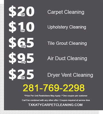 ... Carpet Cleaning, your trusted provider of professional cleaning services in Katy and surrounding areas. We specialize in carpet cleaning, tile and grout cleaning, air duct cleaning, dryer vent cleaning, upholstery cleaning, and furniture cleaning. Using ...