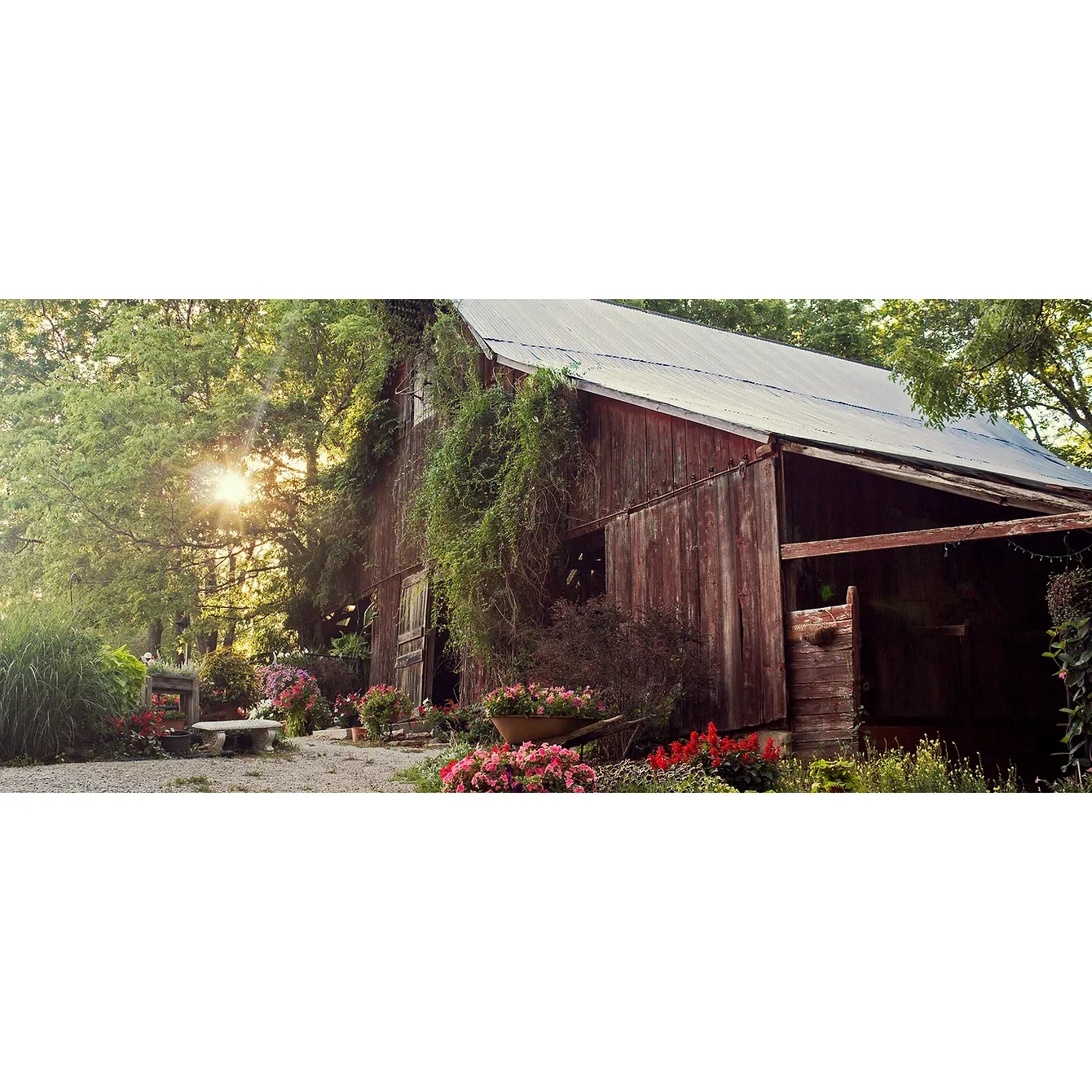Located in Southwest Missouri, our Gambrel-Style Barn, Covered Pavilion, and Nature's Chapel ...