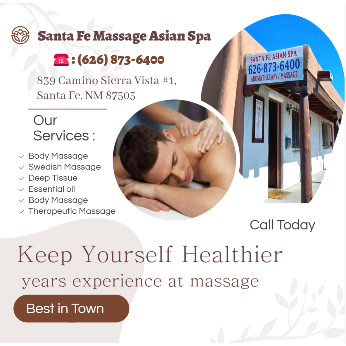 Santa Fe Massage Asian Spa in Santa Fe, NM, offers a rejuvenating experience with their varied services, including Swedish Massage and Asian Foot massage spa. Their professional approach ensures a relaxing and therapeutic session, allowing ...