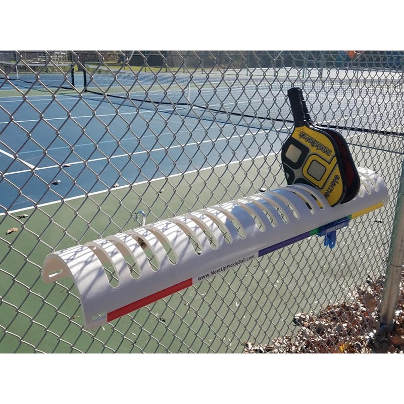 The rack holds 20 paddles with NEXTuP sliding indicator and color code to indicate who has the next game.