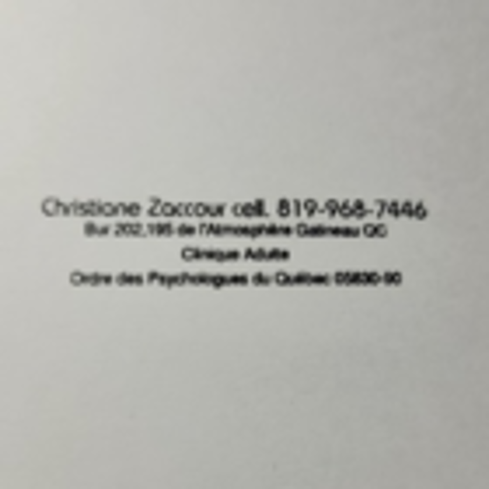 ... proposées par les Thérapie Cognitivo Behaviorale + Thérapie de l'Acceptation et de l'Engagement. Mes qualités personnelles d'intégrité et de bienveillance sont reconnues par mes patients and par le réseau professionnel de l'Outaouais.